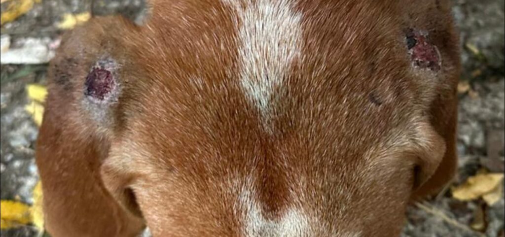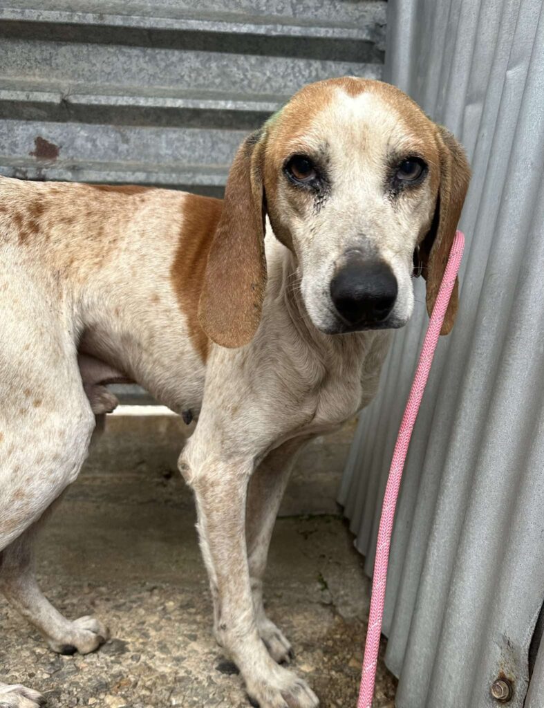 This poor soul was abandoned sometime last night or early this morning outside of our shelter. He was tied to the fence.